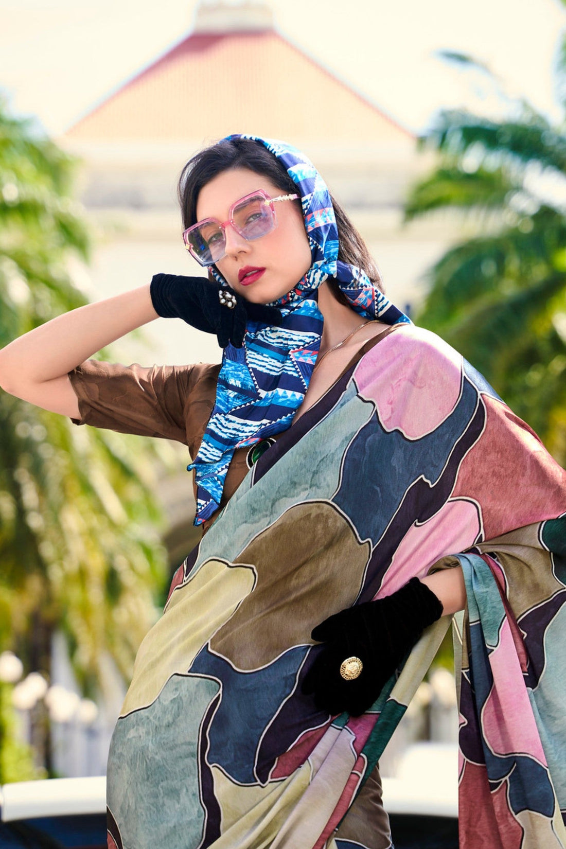 Elevate your style with our Blue Digital Printed Pure Satin Saree, where the smooth, lustrous...