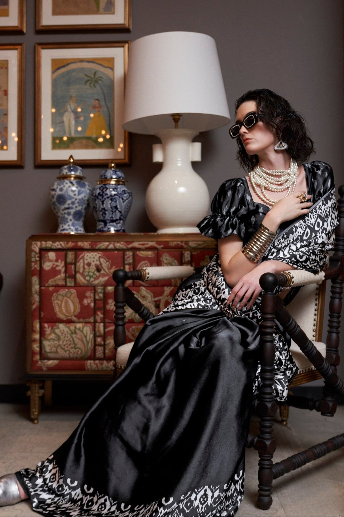 Elevate your ensemble for your upcoming special occasions with our stunning black satin saree, a...